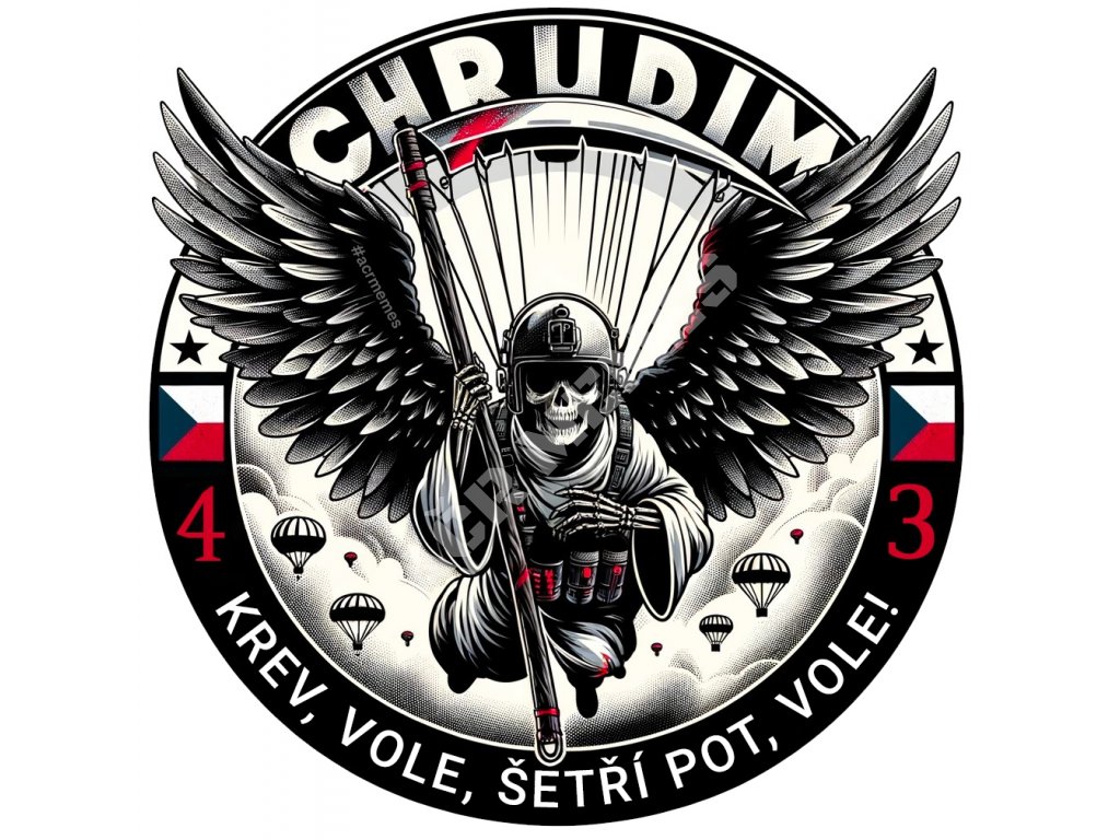 Samolepka pro každého fanouška nebo člena 43. výsadkového praporu (pardón, teda pluku), protože kdo by neznal ,,Chrudim pyčo!”